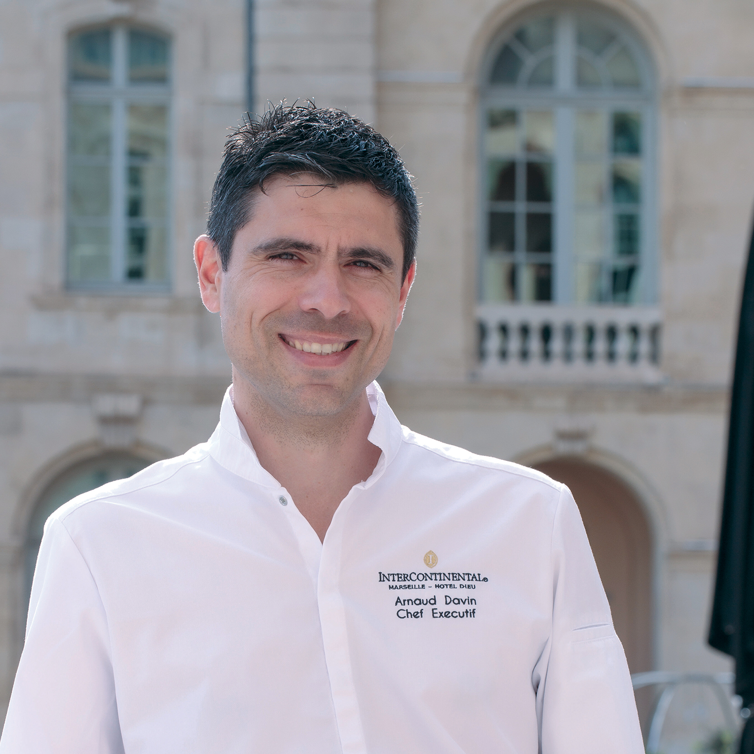 Originaire de Bourgogne, Arnaud Davin se forme aux côtés de chefs étoilés. De Paris à la Côte d’Azur, en passant par Pékin, les Caraïbes, la Polynésie et l’Océan Indien, il développe sa cuisine avant d’ouvrir et diriger son propre restaurant, La Serre à Paimpol, pendant 7 ans. Cet amoureux du monde revisite les recettes méditerranéennes, y transposant les marqueurs forts des saveurs exotiques et singulières de sa cuisine. Il nous invite à un véritable voyage des sens, nous racontant une histoire culinaire qui explore les saveurs du monde autour du plaisir partagé d’une cuisine imaginée avec générosité.