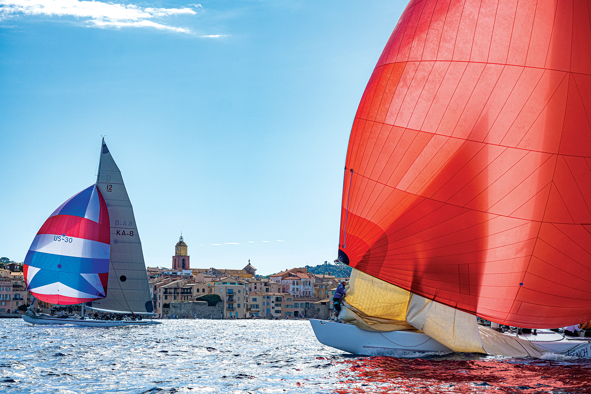 Fin septembre début octobre, les voiliers Maxi, Modernes et Traditions filent sur Saint-Tropez boucler en beauté une saison de régates en Méditerranée. Leur ballet coloré offre le spectacle extraordinaire du plus beau rassemblement nautique du monde, avec pour ultime bouée, un célèbre clocher ocre et jaune.