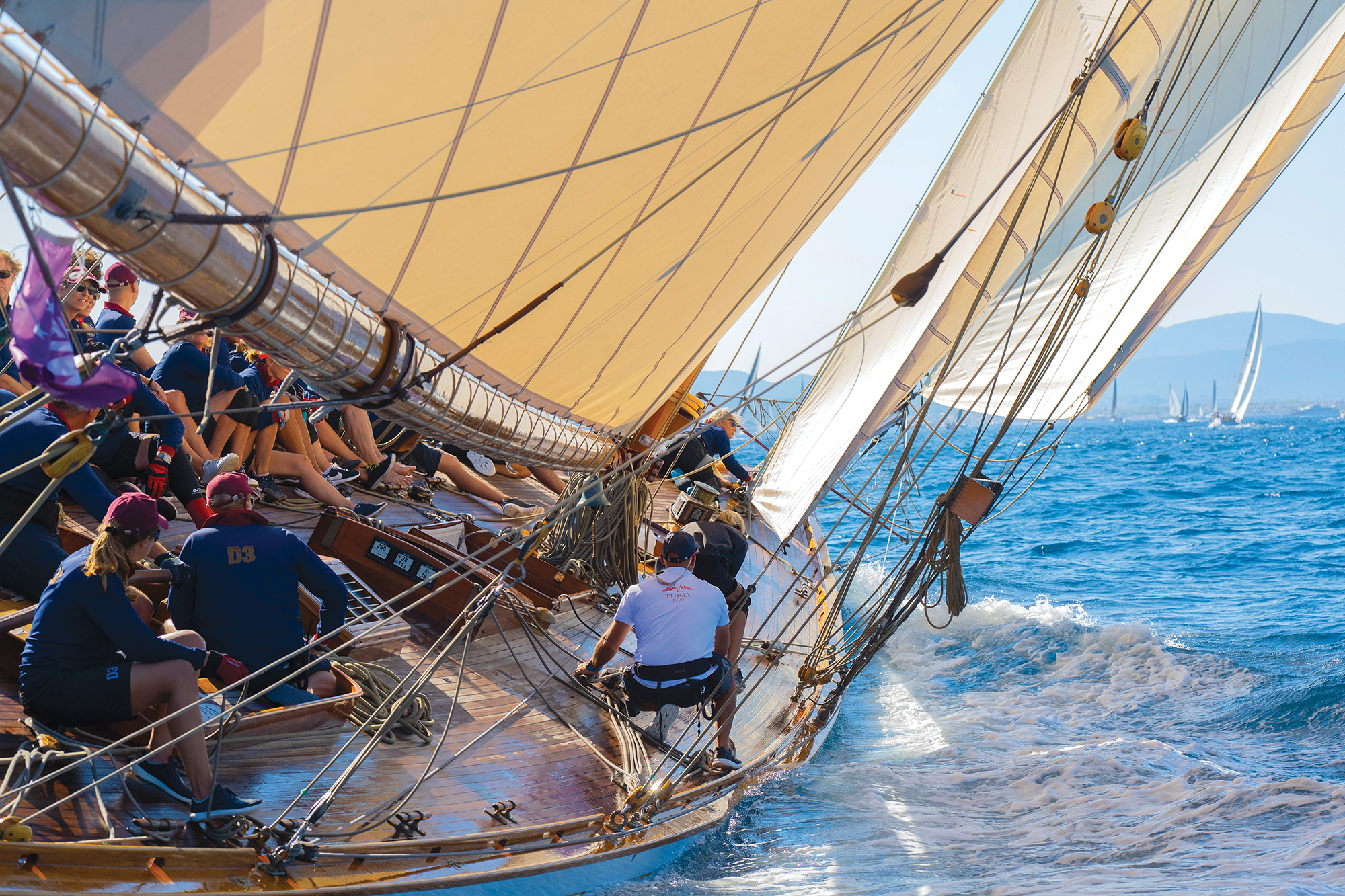 Imaginez l’extase vous envahir lors d’une navigation sur un magnifique voilier centenaire, aussi léger qu’un papillon, l’un de ces splendides navires classiques qui animent le golfe de Saint-Tropez à la fin de la saison estivale. Moonbeam IV par exemple : ce voilier de 115 pieds (35 m) construit en 1914 par le célèbre architecte naval écossais William Fife pour le fils du médecin de la Reine Victoria, fut racheté en 1950 par le Prince Rainier de Monaco pour son voyage de noces avec Grace Kelly. Il fut le dernier d’une série de coursiers navigant en Méditerranée, une star ou plutôt un rayon de lune parmi les plus beaux yachts jamais construits au XXème siècle. A l’automne, ces sublimes navires jouent ici leur symphonie, mêlant leurs voiles blanches aux voiles noires des Wally, ces Maxi Boats taillés pour la vitesse, nouveaux seigneurs des mers.